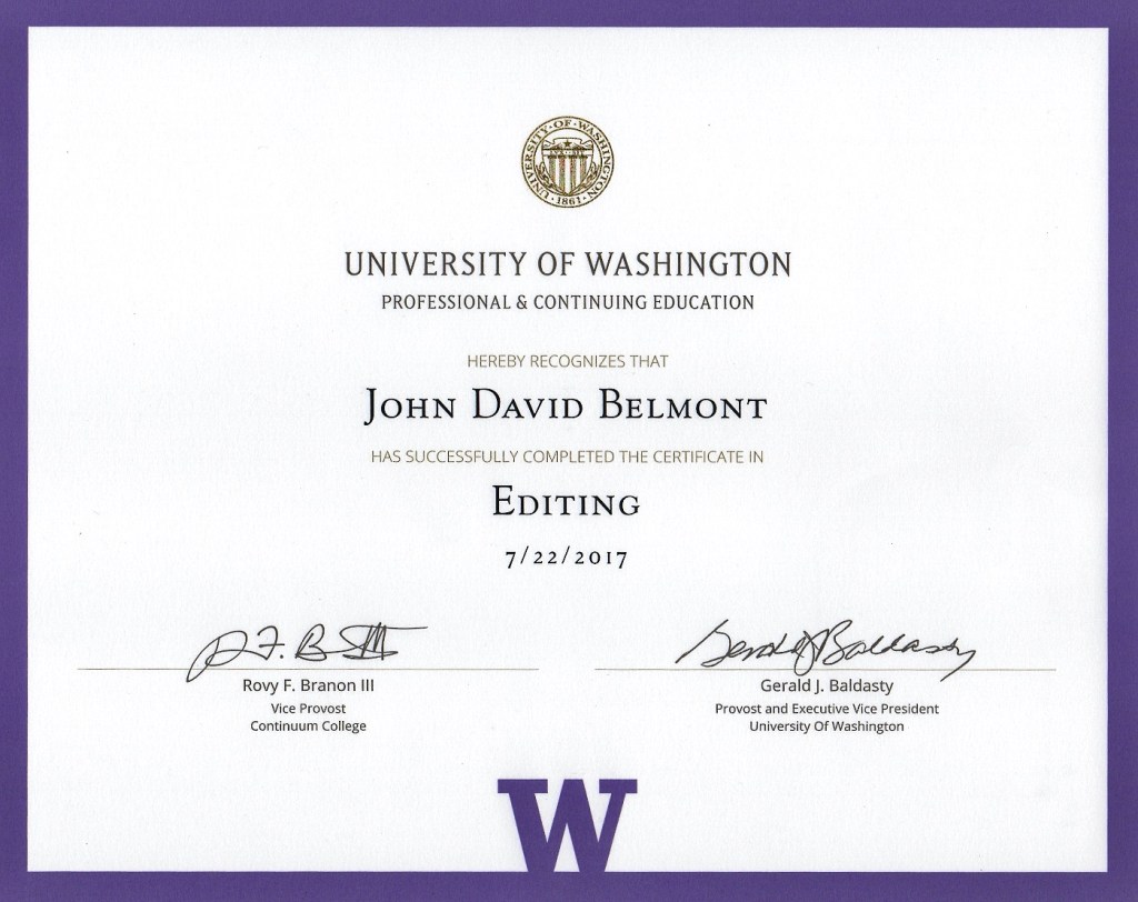 Editing Certificate – John Belmont Share this: Share on X (Opens in new window) X Share on Facebook (Opens in new window) Facebook Share on LinkedIn (Opens in new window) LinkedIn Email a link to a friend (Opens in new window) Email Like Loading...